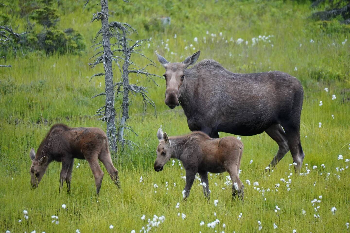 Für die eher kurze Nacht musste ich heute eher früh aufstehen. Wir hatten um 10:00 Uhr mit unseren deutschen Freunden welche mit ihrem Mercedes unterwegs sind zum Frühstücken abgemacht. Also ging es ohne Kaffee los an den Übernachtungsplatz den wir bei den Lachsfischern hatten. Wir konnten am Strassenrand noch eine Elchkuh mit zwei jungen beobachten. Toll!