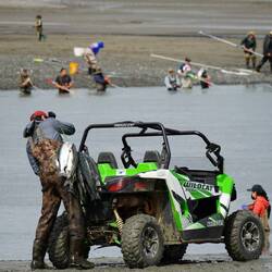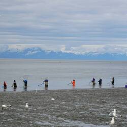 Nach dem ganzen Run durch Werkstätte, Handystores und Teilehändler wollten wir einfach nur noch weiterziehen. Wir hatten schon länger von dieser tollen Gezeitenwelle gehört die jeden Tag in den Turagain Arm strömt. Durchschnittlich einmal im Monat türmt sich die Welle bis zu 3 Metern hoch und Surfer aus aller Welt versuchen sie zu surfen. Das spezielle daran ist nicht nur, dass es sich um eine einmalige Gezeitenwelle handelt, sondern, dass die Surfer nur einen Versuch haben um die Welle zu kriegen, da es ja nur die eine pro Gezeit gibt. Heute war die Welle nicht so hoch und nur wenige Surfer versuchten sie zu surfen. Schlussendlich waren wir falsch platziert um die Welle perfekt zu sehen, was keine Rolle spielt. Die Welle ist relativ langsam und man kann diese mit dem Auto überholen und immer wieder sehen. Heute schafften es nur wenige Surfer die Welle zu surfen und nur einer hatte sich perfekt positioniert. Das ganze war für uns trotzdem ein tolles Erlebnis und gerne hätte ich es mit dem Surfen auch versucht.Læs mere