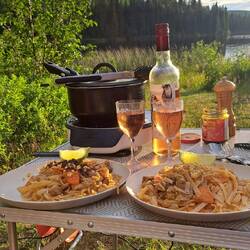 Oben in Tuk übernachteten wir direkt am arktischen Ozean und konnten die Füsse ein wenig im eiskalten Wasser baden. Hier oben haben wir den letzten Risotto aus dem Fresspäckli meiner Arbeitskolleg*innen gekocht. Danke nochmals für das Tolle Abschlussgeschenk!