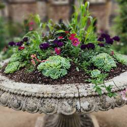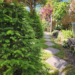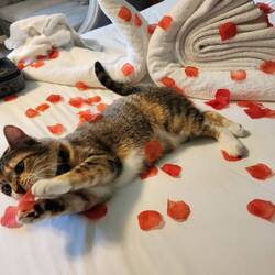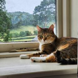 Luna is enjoying the vacation and gardens in her own way.