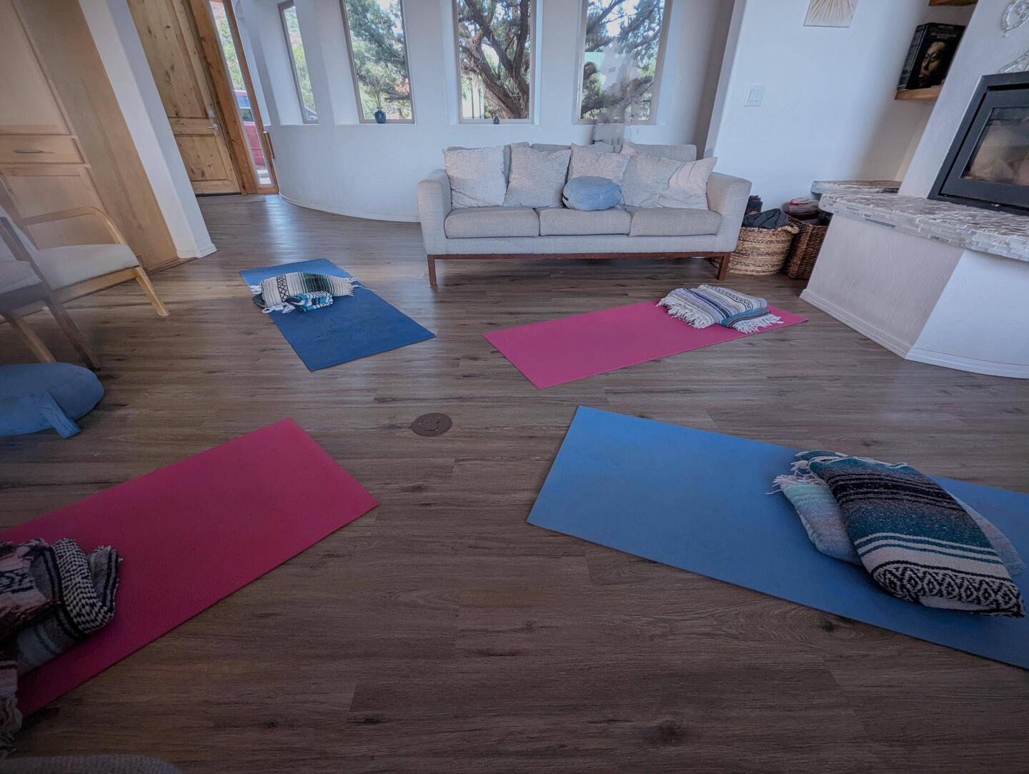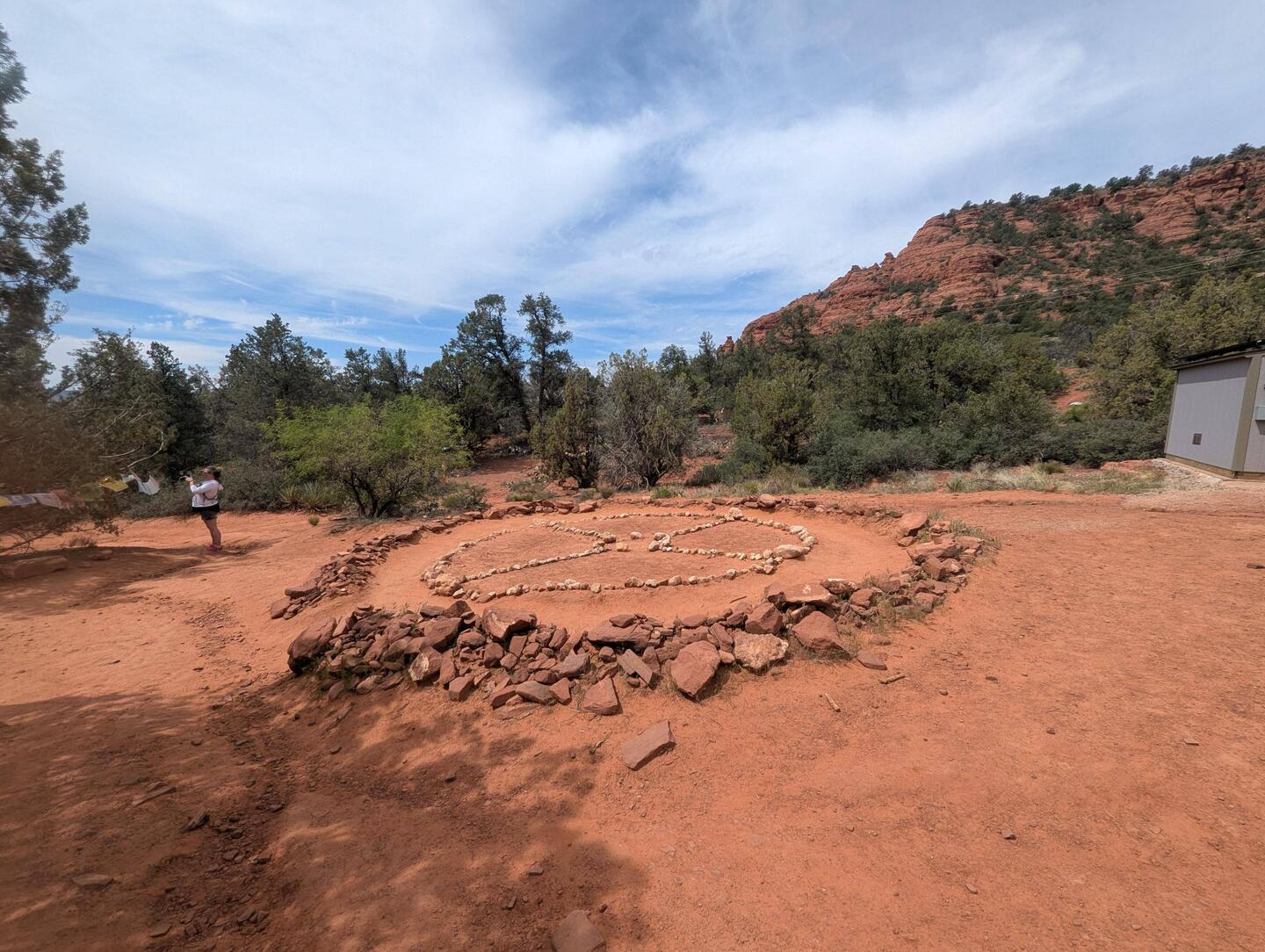 A beautiful park with a medicine wheel, Buddha, prayer flags, and peaceful energy.