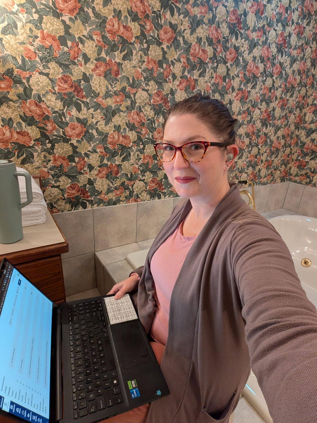 When the only warm spot in your room is the bathroom... That's where you do your work!