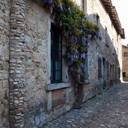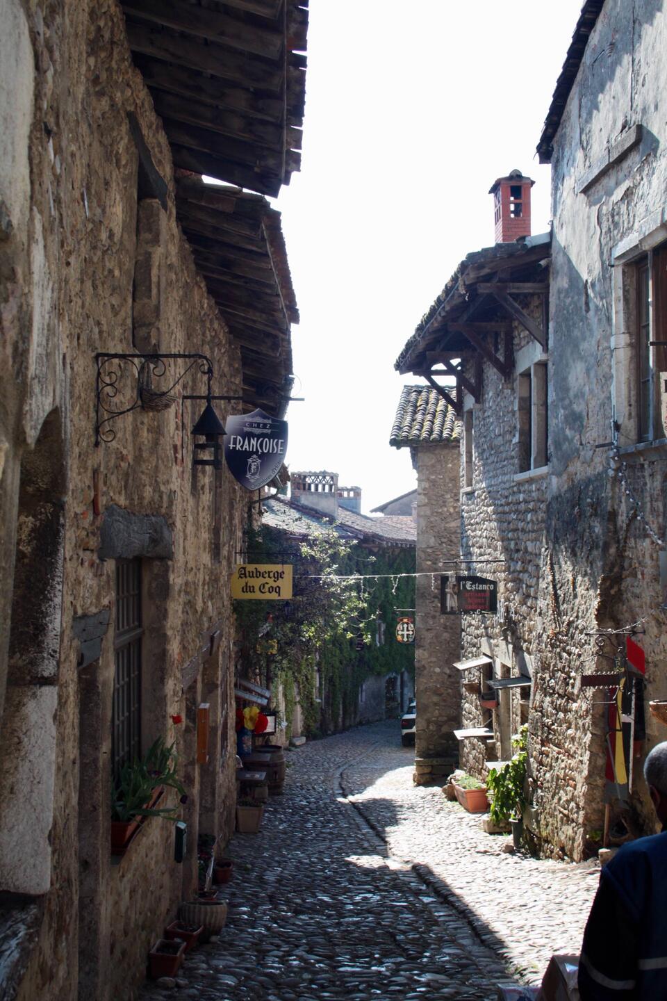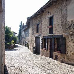 Pérouges ist ein vollständig erhaltenes mittelalterliches Dorf,erbaut komplett aus Stein und sehr unwegsamen Kopfsteinpflaster, vielen kleinen Gassen und Störchen! Die Geschäfte dort sind im mittelalterlichen Stil und die Angestellten tragen ebenfalls mittelalterliche Kleidung.