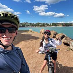 Today we ferried over to Waiheke Island, which is a super cute island directly off the coast of Auckland(45 minute ferry). This island is renowned for its wine growing and tasting, so we opted to bikeLeia mais