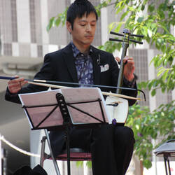 Once the tour finishes, we say our good-byes but decide to stay back for the last performance a little later. Beautifully set to the background of the Akagi-jinja shrine, we watch a magician and three guys playing weird metal flutes. Unfortunately, we hardly understand a word, but we get the jist.
