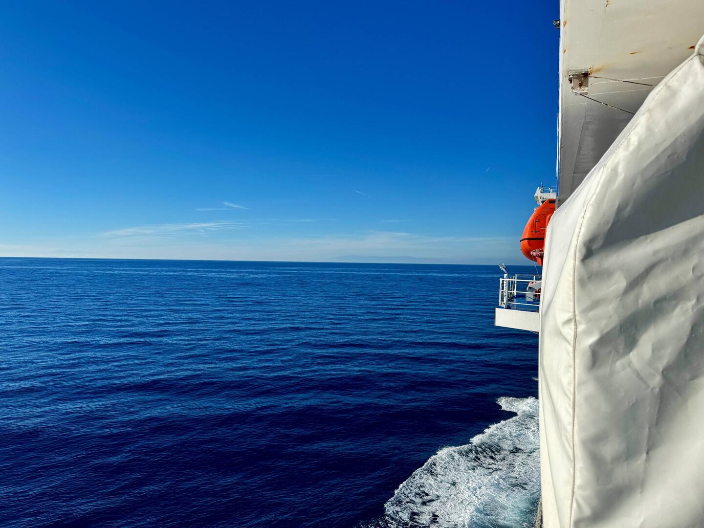 Das italienische Festland ist schon in Sichtweite. In etwa einer Stunde werden wir dort sein, ca. 17:45 Uhr. 19:30 Uhr wäre geplant gewesen. Hatten wohl genügend Rückenwind.