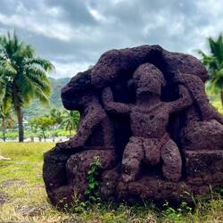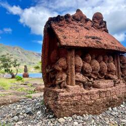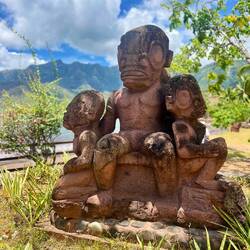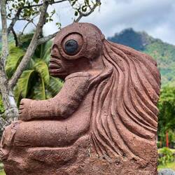 As we walked along the beachfront to the Nuka Hiva’s cathedral, we passed several traditional tiki sculptures.