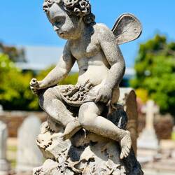 Cemeteries often have monument shops nearby, but the one in Adelaide features an eye catching statue out front.