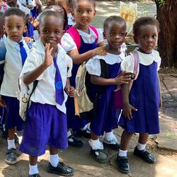 We ran into several groups of school kids at Haller Nature Park in Mombasa. Most of them were grade-school aged (6 to 9, probably) but the last group we encountered were teenaged girls.