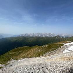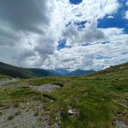 Heute war ziemlich viel Abstieg angesagt und das Gelände wurde wieder grüner und sanfter. Der Weg war auch ok und recht einsam. Vermutlich fahren alle mit dem Auto/Bus/Lift gleich weiter nach oben.