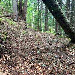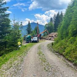 Ich hab dann versucht den Weg etwas tiefer auf einer Forststraße zu umgehen, aber auch hier war nach 10 Minuten Schluss: Die Forststraße war komplett weggerissen und auch so, dass es zu gefährlich war irgendwie darüber zu laufen.