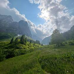 In der früh war es ziemlich bedeckt und die Gipfel waren alle in den Wolken. Ich musste erst mal etwas aufsteigen und immerhin stiegen auch die Wolken etwas auf.