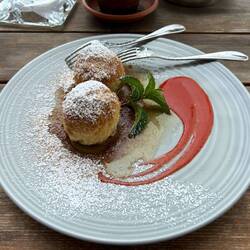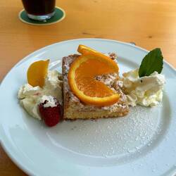 An einem schönen Gasthof war dann Pause angesagt, Nico hat sich deine typische Südtiroler Marende gegönnt und bei mir gab es einen Affogato und dazu Marilenknödel, die in Zimt gewälzt waren - sehr, sehr lecker.