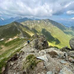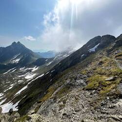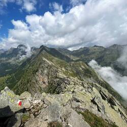 In der Früh ging es von der Unterkunft erst unschwierig, aber stetig nach oben über den Mutkopf zur Mutspitze. Hier war ich vor 2 Jahren schon mal, heute war es aber anders, da die Wolken mit uns aufgestiegen sind und man ständig andere Blicke hatte und in manchen Momenten keine 100m Sicht obwohl es ein sonniger und schweißtreibender Tag war.