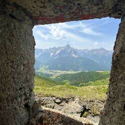 Den Gipfel der Kaisersburg konnte man jetzt schon gut sehen, aber das ist etwas bizarr. Man hat in den 70er Jahren direkt daneben die Bergstation der Kaisersburgbahn gebaut. Einen ziemlichen Betonbunker, der dann auch noch höher ist als der Gipfel. Dazu darunter noch ein paar festinstallierte Schneekanonen.