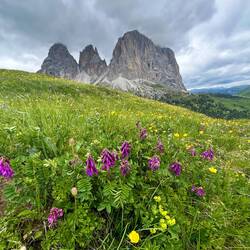 Es ging den ganzen Vormittag gemütlich dahin und gehen Mittag war ich schon am Schlernhaus. Da ich einige Müsliriegel schon sehr lange durch die Gegend trage bin ich dann mal nicht eingekehrt und hab einfach ein Stück weiter etwas Pause in der Wiese gemacht.