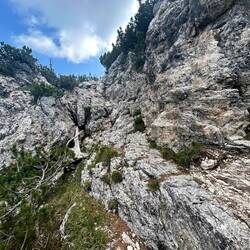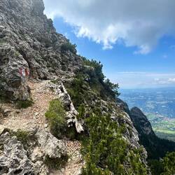 Es ging dann auf schmalen Pfaden und auch wieder etwas mit Seilen versichert nach oben. Schlimm war es nicht, ich hab auch andere Wanderer mit Kind in der Kraxe getroffen.