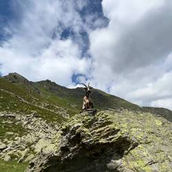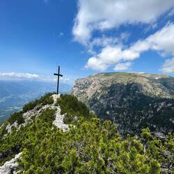 Der Königstuhl zierte sich aber etwas und war immer wieder komplett in den Wolken um dann 5 Minuten später komplett frei zu sein. Als ich dann oben war, war er leider wieder in den Wolken. Am Gipfel war noch ein Einheimischer mit mir, mit dem ich dann einen Zirbenschnaps trinken durfte/musste.