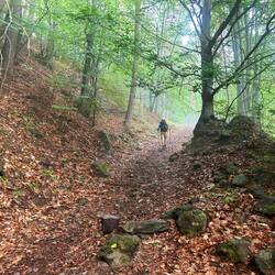 Es ging durch Weinberge und etwas später durch Wälder, teilweise wieder sehr verwunschen, weil die Wolken heute so tief waren, dass sie bis in die Wälder hingen.
