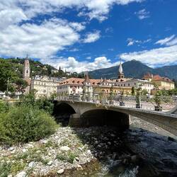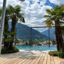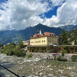 Daher ging es heute „nur“ 17km weiter nach Meran und auch bewusst als halber Wandertag geplant, um sich dann hier eine Nacht in das Hotel Therme Meran einzuquartieren.