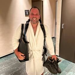 Es war trotzdem eine etwas skurrile Szene als wir hier verschwitzt in unserer Wandermontur eingecheckt haben.