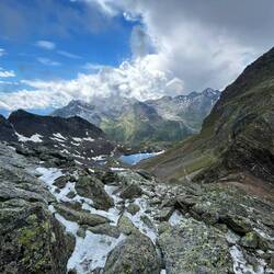 Hier mussten wir uns dann entscheiden: Entwerder über die Mondseescharte oder etwas interessanter über den Tschigat. Nachdem wir dann nochmal den Wetterbericht und das Regenradar konsultiert hatten, fiel die Entscheidung für den Tschigat und erst sah es sogar so aus als würde es noch etwas besser werden.