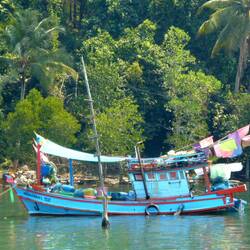 Cup of coffee with Claire who is Lebanese but was born in Guadalupe and speaks four languages. We settle on French. She wants to rent a scooter once she hears I am a professional Koh Kood scooterEn savoir plus