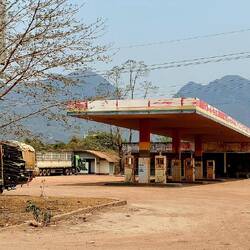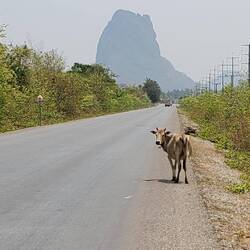 Buddha and Xiengliab caves first. The lorries, as travelers tend to call the trucking convoys, rip by while honking. I find a side road, dirt and quiet for a while.