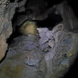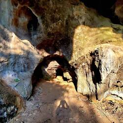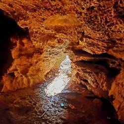 The last grotto of the day is a find. There is only a small sign, a thin path, and a hole in the wall that rises over 300 feet overhead. I duck and enter, turn on my head lamp. It's just a passage to another hole and so it goes as I enter deeper and deeper into mother Earth.