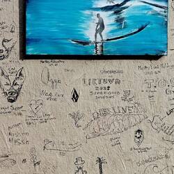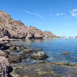 Drove two hours to get here, crazy road cut into steep rocky walls. Super cool beach on an isthmus. Getting SUPs out, no tail fin but who cares. Hikes and talked with others, Michael and Paula who areLæs mere