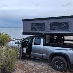 Cold morning, uninspiring for water sports, chose to move on. Drove to the Pacific ocean, tiny town with a long sandy beach and a surf bar serving fish tacos. Classic.