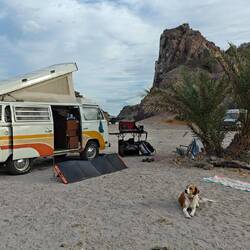 Drove down to a dirt road, that gave us a good distance for riding about 23 miles with elevation changes. Another day of hanging out at Bahia Concepcion in the afternoon, making dinner and planningLæs mere