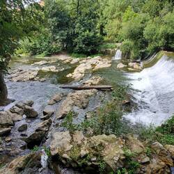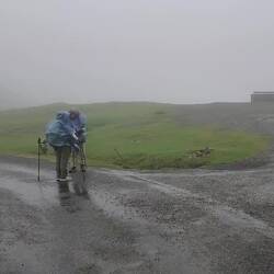 Rain. Lots of rain. So much rain that the trail and the tunnels flooded. It was great fun to splash along the trail and stand in knee deep water rushing through my legs. We're soaked. It would haveLes mer