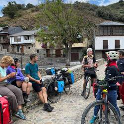Took the bus down to Logrono, the bike was all set up by Eugenio, and we added two bags and ILes mer