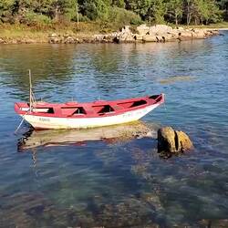 Today I need to solve a situation, where can I leave the bici while I'm on the island? Can't take it with me, can't leave it at the pellegrino albergue. So I found a sailboat moored on a cay out ofLue lisää