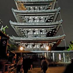 I'm walking all over the city again. For part of it I have Oliver's company through WhatsApp. It's great do do a little show and tell. There are 1600 temples in this city. I walk to the 5 story tall pagoda that once was built by Kobo Daishi. But like almost all old buildings in Japan a fire demolished the original and it has been rebuilt many times.