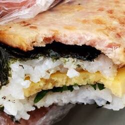 The bike riding is great but I never met up with the Aussie again. The rain starts and it's mild. I see a fun chair indicating a burger place and that would sure hit the spot. Great folks. We talk about formula 1 and they offer a mochi filled with a whole Mandarin. Tastes great. I'll have to come by there again tomorrow.