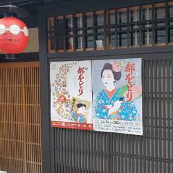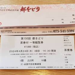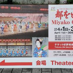 Checked out of the hostel, walked to the theatre, where Miyako Odori is showing the 150th performance of this traditional Japanese dance, only for the month of April. It sold out early. A young lady tells me it is sold out and I say yes, it's too bad. Then she says are you just one person? It turns out there is one ticket for the tea ceremony and show left. I get to attend this event after all.