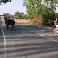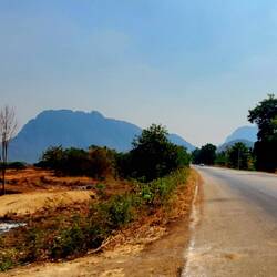 It's a good mix of roads today, some busy trucking roads and some very small dirt tracks through minimalist farms. It shows me many slices of life in Thailand.