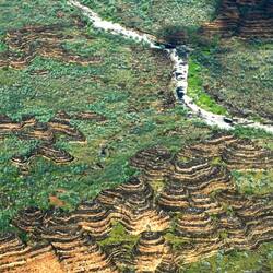 The Bungle Bungle Range is a major landform and the main feature of the Purnululu National Park, situated in the Kimberley region of Western Australia
