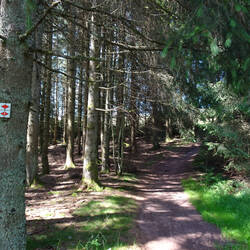 Der Mittelweg trifft bei der Heubacher Höhe auf den Westweg, beide laufen bis kurz hinter der Kalten Herberge zusammen. Zwischenzeitlich gibt es schöne Aussichten in die Region.