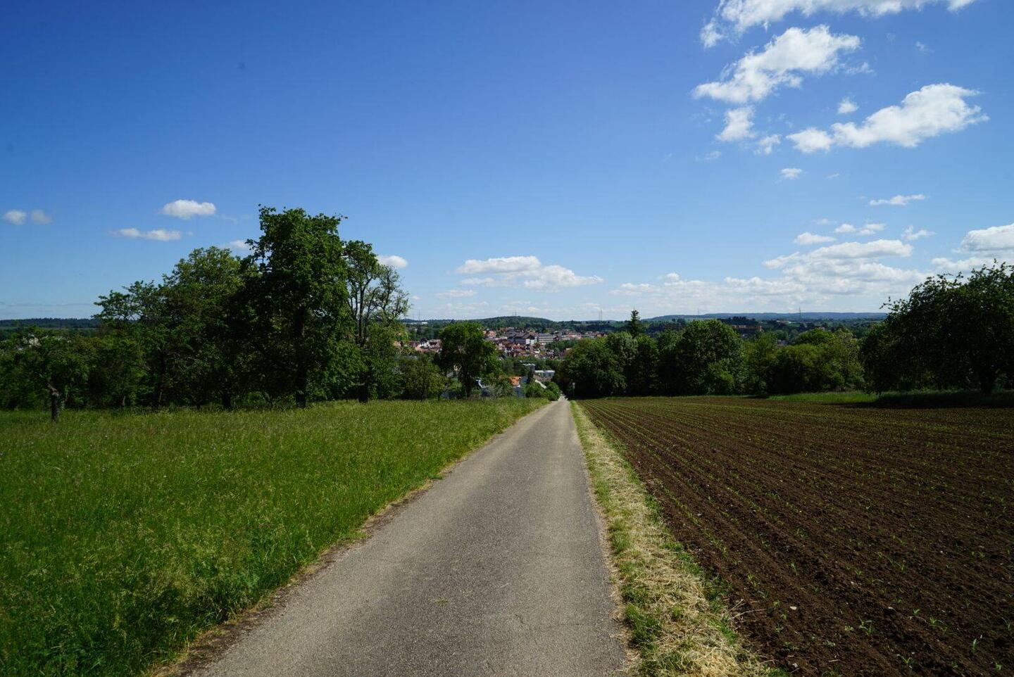 Mein Weg verläuft auf gut befestigten Wegen. Hinter Ispringen verlasse ich endgültig die urbane Umgebung und es geht durch Wald und Flur.