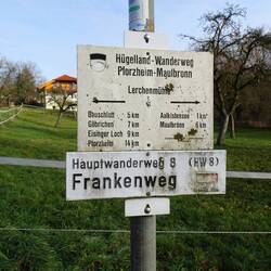 Der Frankenweg HW8 führt hier durch den Naturpark Stromberg-Heuchelberg. Ein großer Teil des Weges ist mit dem Eppinger-Linien Weg identisch.