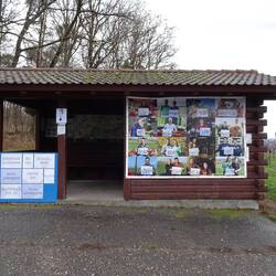 Nach Überquerung der A8 führt mich der Weg im Hohwald an zwei offenen Schutzhütten vorbei. Auf gut befestigten Wegen erreiche ich zunächst Göbrichen, dann Bauschlott.