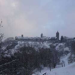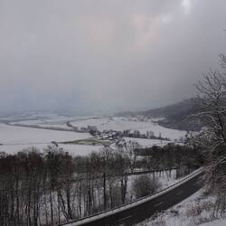 Eine Woche ist vergangen und ich setze meine Frankenweg HW8 Wintertour fort. Die Region präsentiert sich heute mit einem weißen Winterkleid bedeckt.