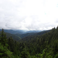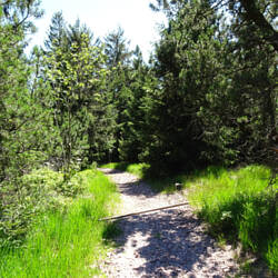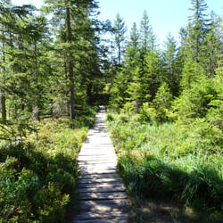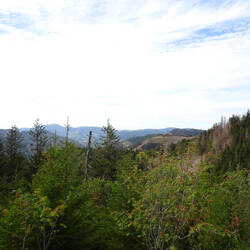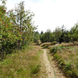 Ab dem Nationalpark-Zentrum folge ich dem Westweg zunächst ein Stück bergauf zur Skisprungschanze mit Blick auf das Tal jetzt von der gegenüberliegenden Seite. Ein schöner Singletrail führt michLeer más