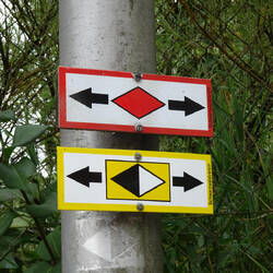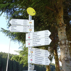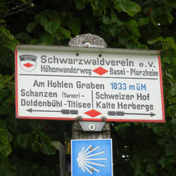 Auf meinen Weg zum Etappenziel Kalte Herberge vereint sich der Westweg ein Stück mit dem Mittelweg und dem Wasserweltensteig des Schwarzwaldvereins.