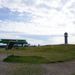 Es steht der letzte große Anstieg auf fast 1000m an. Der Weg zur Hohen Möhr (983m) verläuft auf einem Single-Trail in Serpentienen hinauf zum Aussichtsturm, der aus bekannten Gründen zur ZeitLeer más