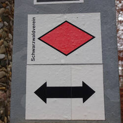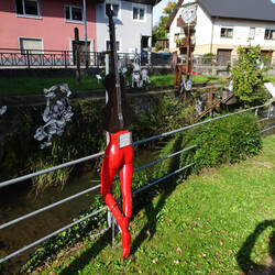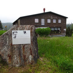 Von der Hohen Möhr bis nach Hasel fällt der Weg permanent ab. In Schweigmatt passiere ich die ehemalige Pension Waldhaus, die durch ein außergewöhnliches Kunstwerk meine Aufmerksamkeit erlangt.