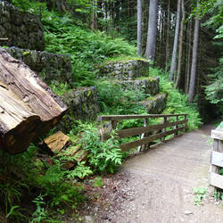 Auf befestigten Wegen erreiche ich den Parkplatz Eckhag, wo bei Bedarf Wasser aus einer Quelle angeboten wird. Den Aufstieg zur Hohen Möhr bewältige ich auf serpentienenartigen Singletrails bis kurzOkumaya devam et